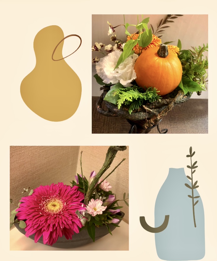 今回はハロウィンが近いので、かぼちゃを使ったアレンジメントです🎃