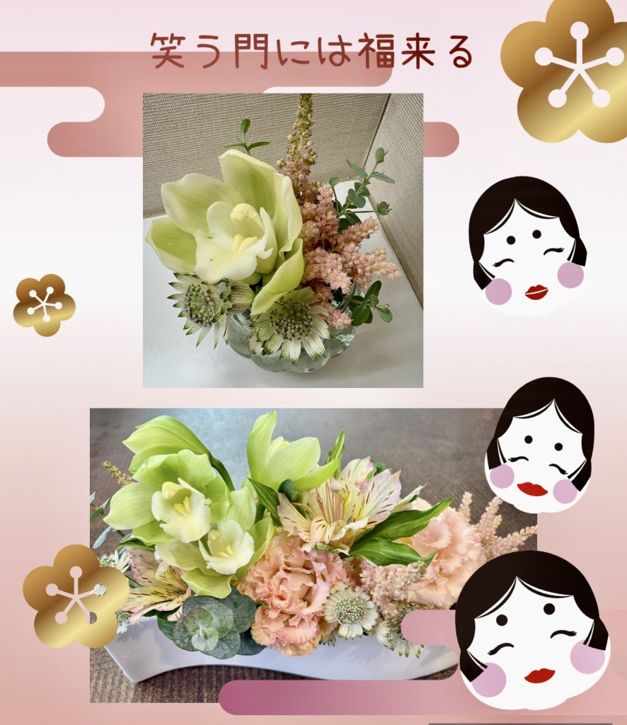ピンクのお花が可愛い、春の訪れを感じるアレンジメントです☘️